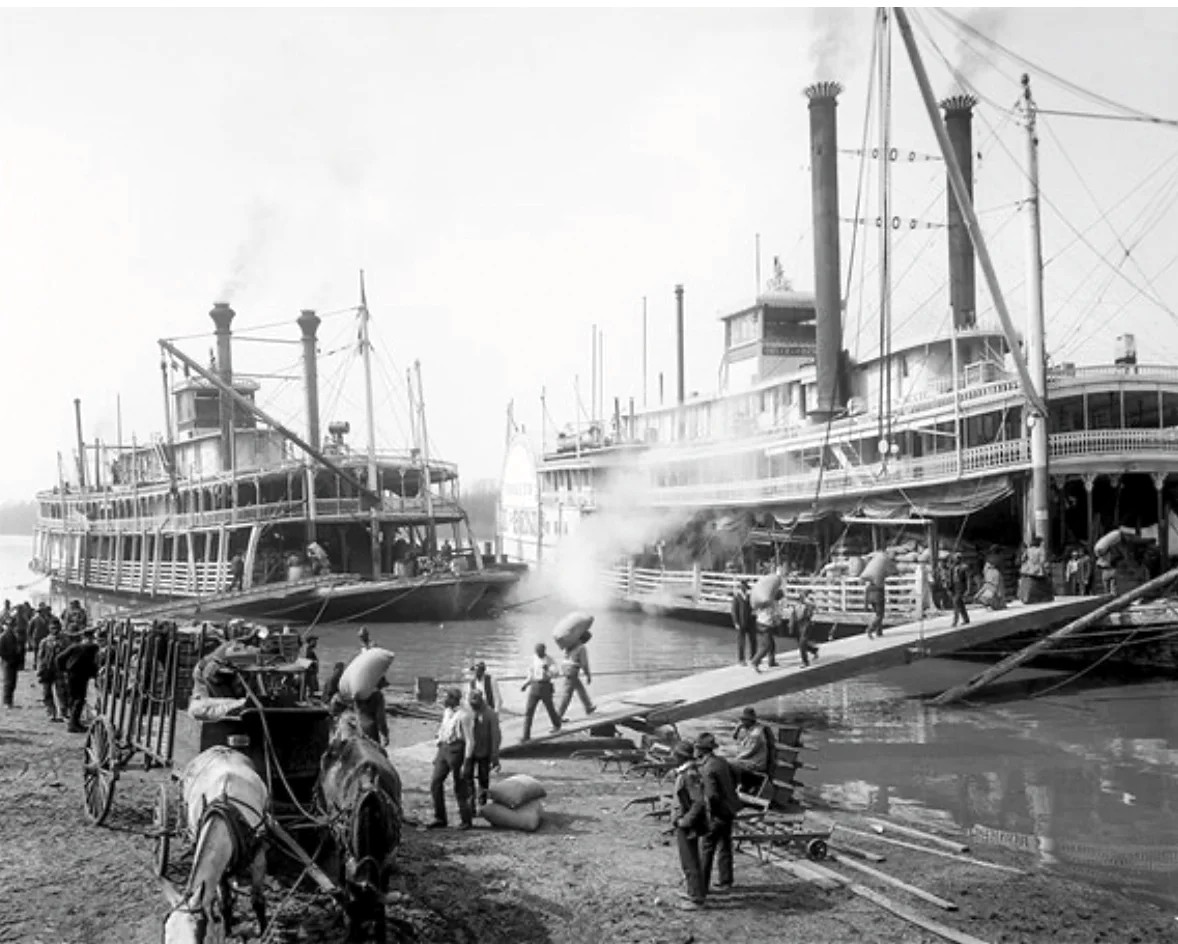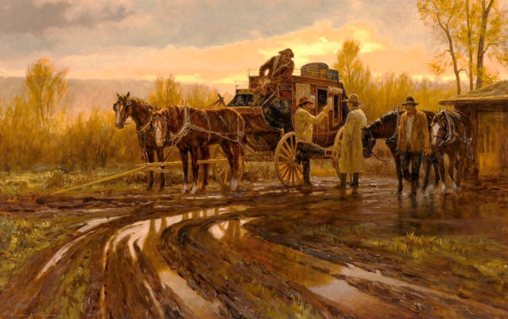 Á dögum fyrir járnbrautir höfðu verslunarmenn, sem ferðuðust langar vegalengdir, allir fjórhjólavagna; þeir komust að því að þegar tekið var tillit til hæða og dala komu hestar þeirra frískari til baka eftir þriggja eða fjögurra mánaða ferðalag en þegar þeir voru í tveggja hjóla vagni en auðvitað er alltaf mikið álag á hest þegar farið er niður brekku.