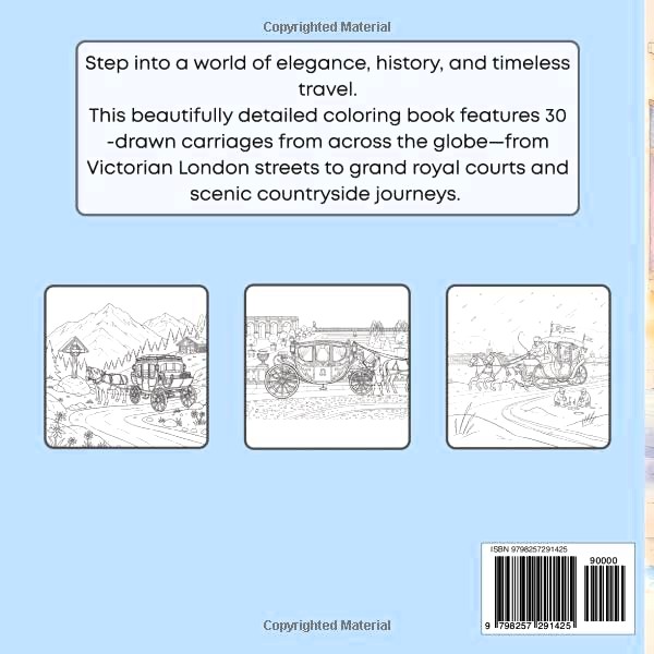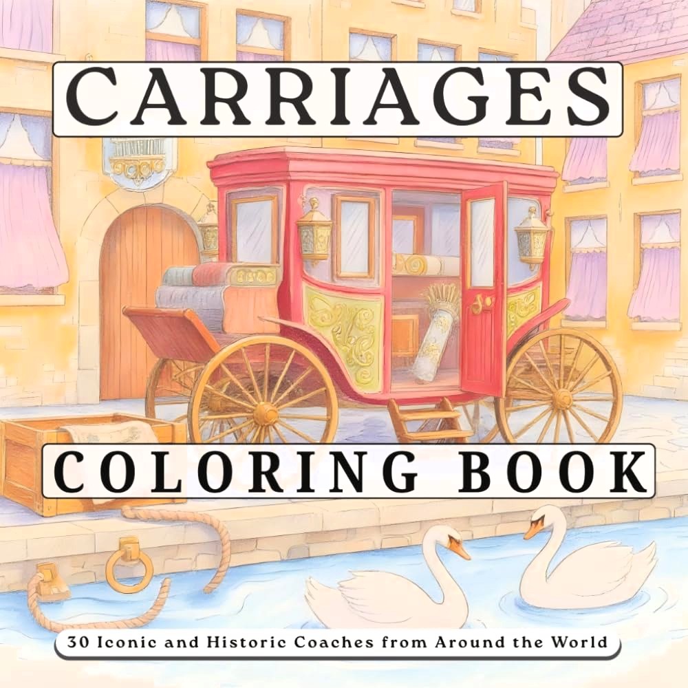 Ferðastu aftur í tímann og lífgaðu við glæsileika sögunnar með þessari litabók um vagna.